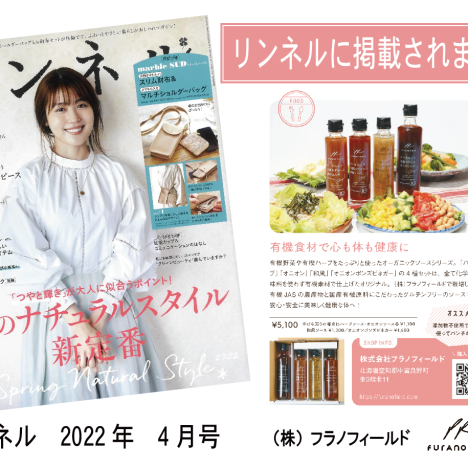 本日発売のリンネル4月号のお取り寄せ商品特集に、オーガニックソースが掲載されました。